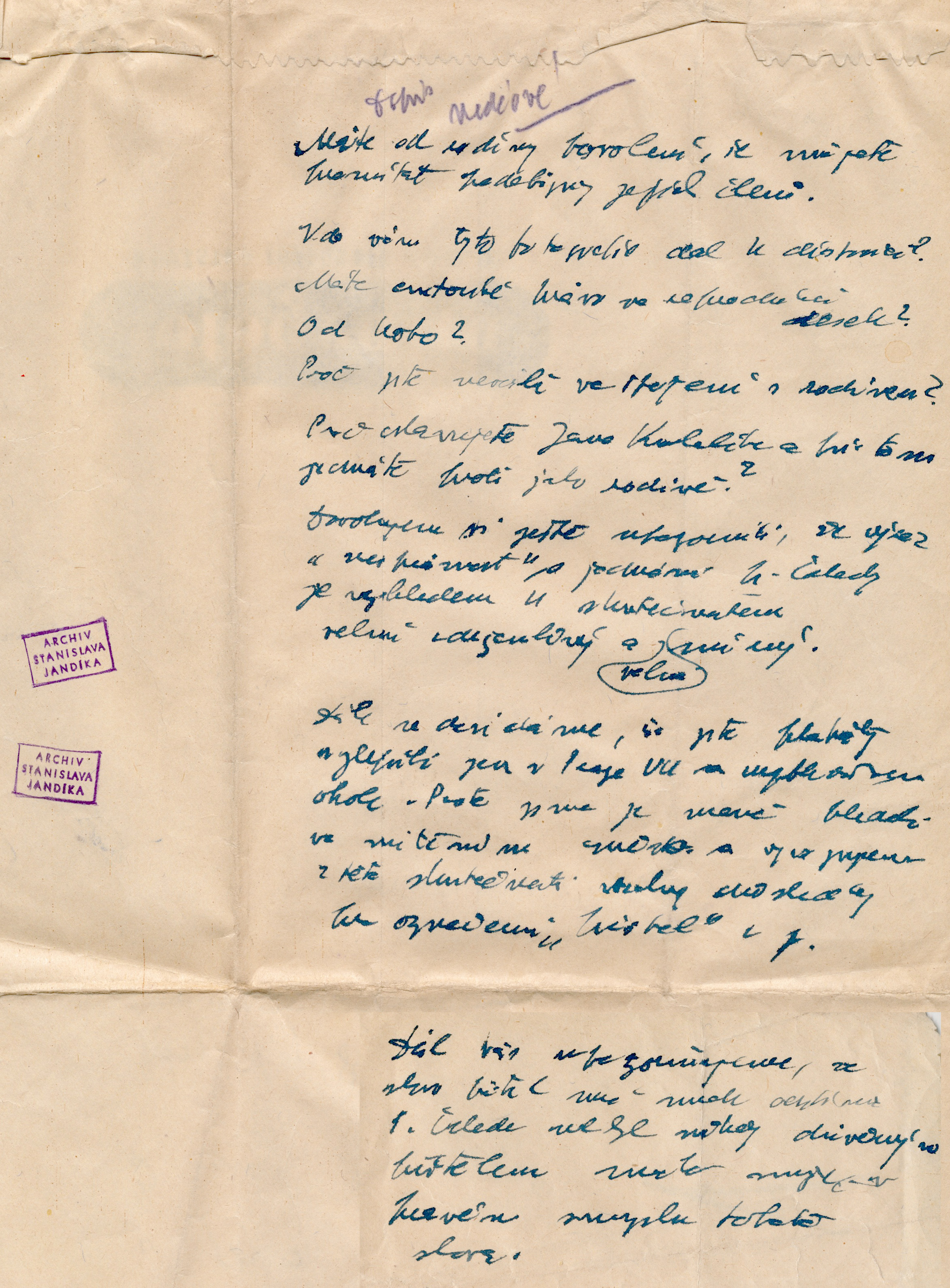 Přepis dopsu Nedéové, patrně Čeledovi? Dopis přepsaný na pytlíku od fotografií, Dopis Nedeové týká se Čeledy