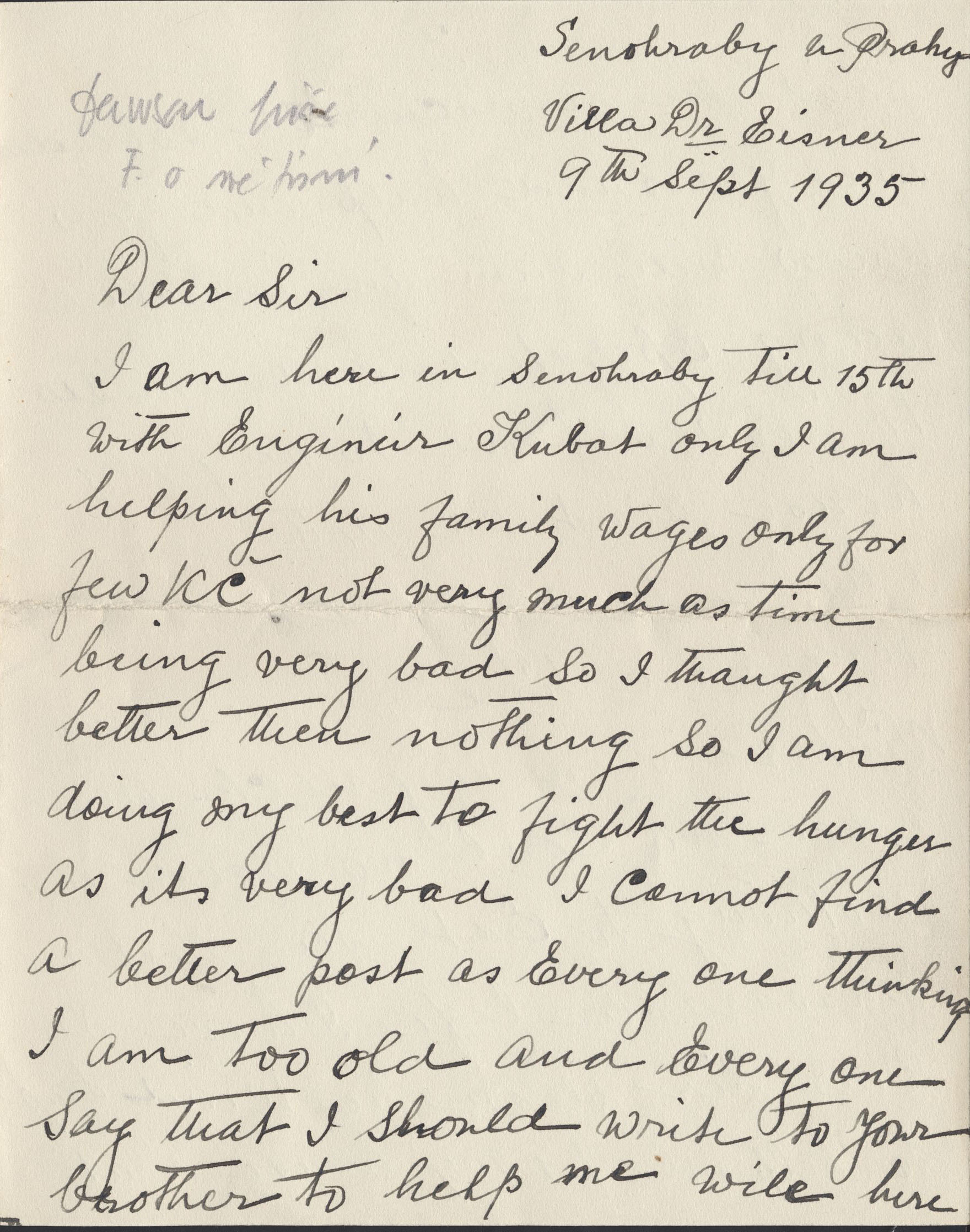 dopis Dawsona Františku Kubelíkovi 8. 9. 1931