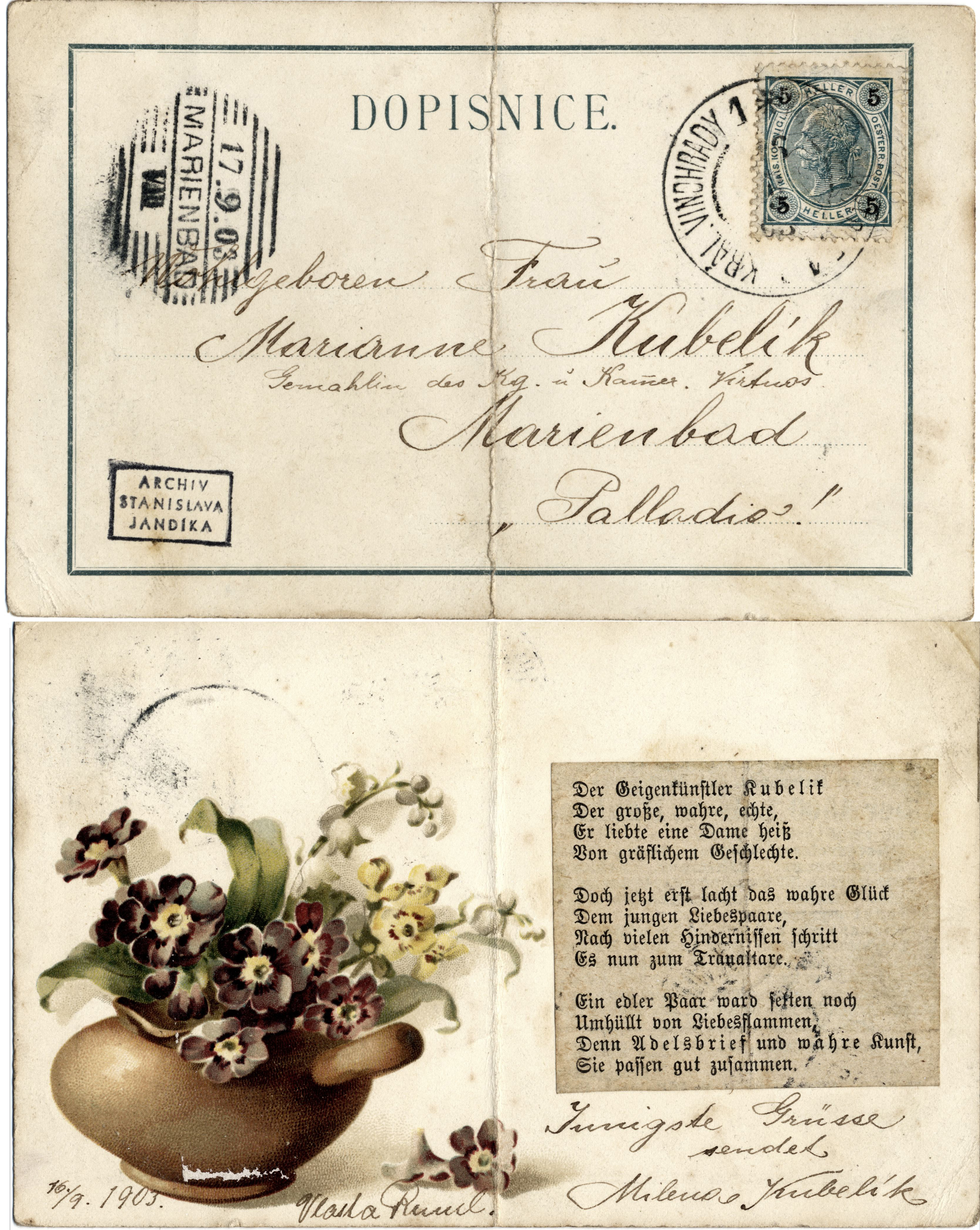 - 1903, 1920, dopis, pohlednice