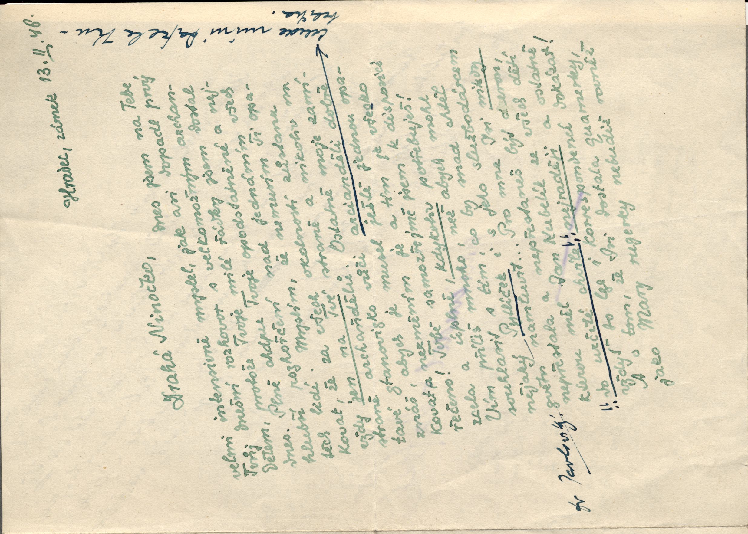 Dopis Jaroslava Čeledy Anitě Kubelíkové, začátek dopis Čeledy Anitě Kubelíkové 12. 2. 1942